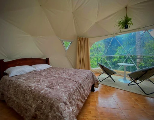 Cada domo está cuidadosamente diseñado para combinar la comodidad con el encanto natural del entorno, ofreciendo interiores acogedores y elegantes que se abren a panoramas impresionantes. La iluminación tenue, las texturas cálidas y los detalles cuidadosamente seleccionados crean un espacio que se siente a la vez lujoso y profundamente personal. Ya sea contemplando el amanecer que tiñe las montañas de tonos dorados o compartiendo conversaciones tranquilas bajo un manto de estrellas, cada experiencia está impregnada de romanticismo y serenidad.