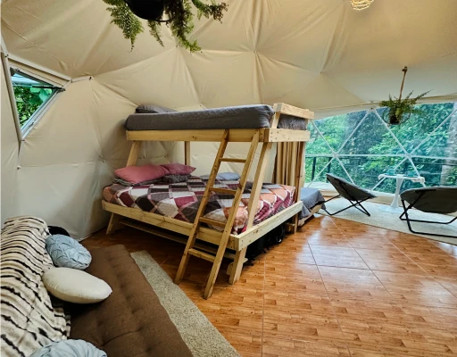Adéntrate en nuestros espacios domo de exquisita construcción que combinan comodidades modernas con una sensación de asombro, donde las vistas panorámicas y los interiores acogedores te invitan a relajarte tras un día de exploración. Ya sea compartiendo historias bajo un cielo estrellado, despertando con el aire puro de la montaña o simplemente disfrutando de momentos de tranquilidad juntos, cada experiencia está diseñada para fortalecer los lazos familiares.