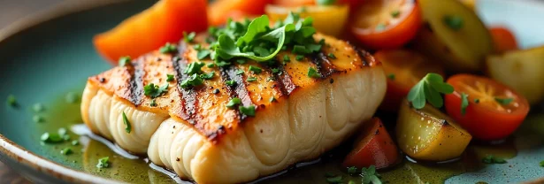 Fresh Pacific fish grilled to perfection with seasonal vegetables and chimichurri